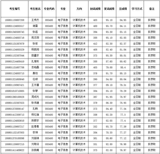 根据《天津理工大学2021年硕士研究生招生复试工作方案》要求,现对2021年计算机科学与工程学院电子信息专业拟录取硕士研究生(专硕一志愿)名单进行公示。